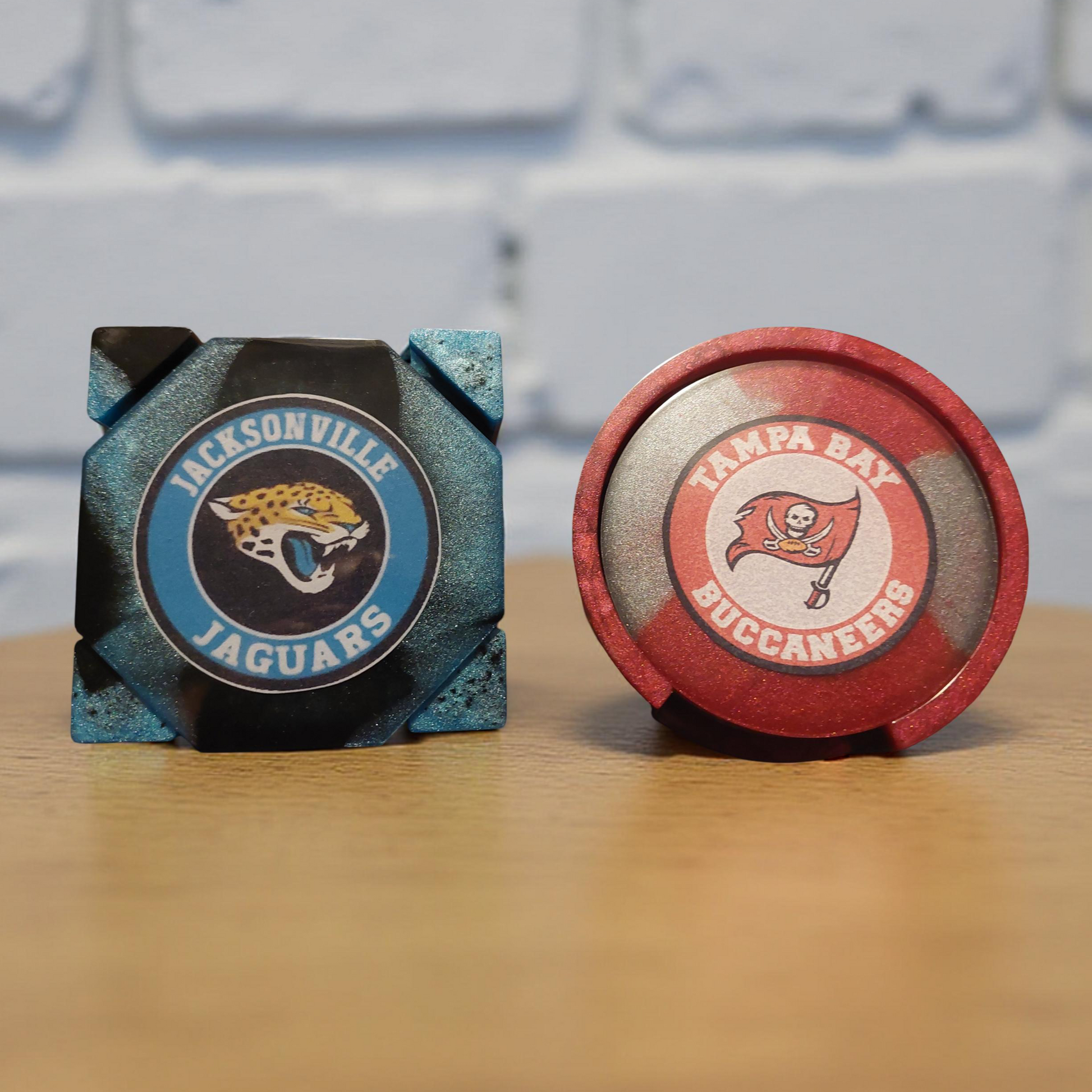Elevate your game day experience with this Resin Coaster Set featuring authentic NFL team logos. Crafted from durable resin, these coasters protect your surfaces from spills and stains while showing off your team pride. Perfect for any sports fan, they add style and functionality to your home, tailgate, or office. Keep your drinks safe and your spirit high with this must-have NFL accessory.